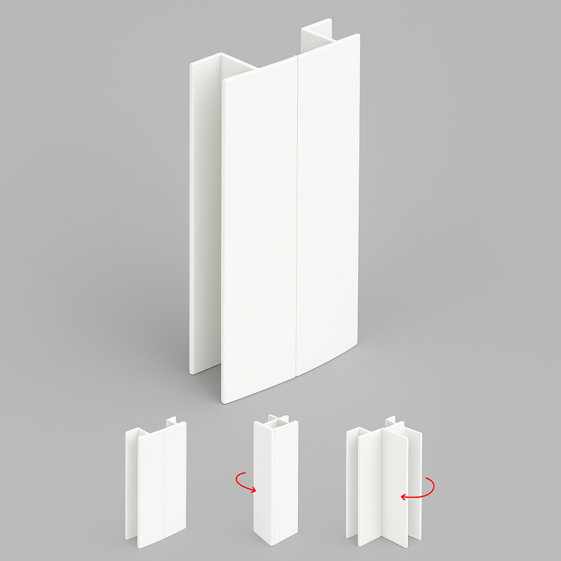 Rugalmas csatlakozó PAX konyhai szegélyhez matt fehér RAL 9010 árnyalatban praktikus megoldás szegélyek különböző szögekben történő összekötésére 90° és 270° között.