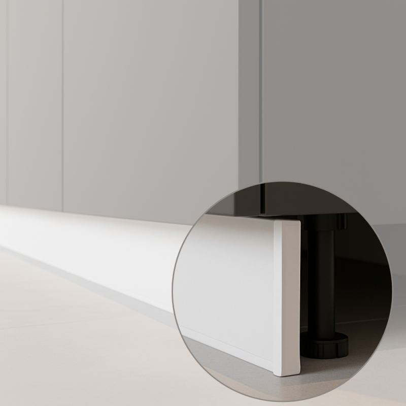 A praktikus konyhai szegélyvég esztétikus és funkcionális műanyag szegély lezárására szolgál a konyhabútoroknál. Biztosítja a műanyag szegély lezárását