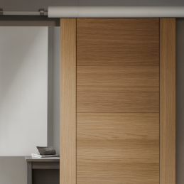 A STANDARD rendszer egyszerű és megfizethető megoldást kínál tolóajtókhoz, amelyek teljesen a felső sínben vannak felfüggesztve. Alsó sínre nincs szükség, ami tiszta átjárást és a padló egyszerű karbantartását biztosítja.