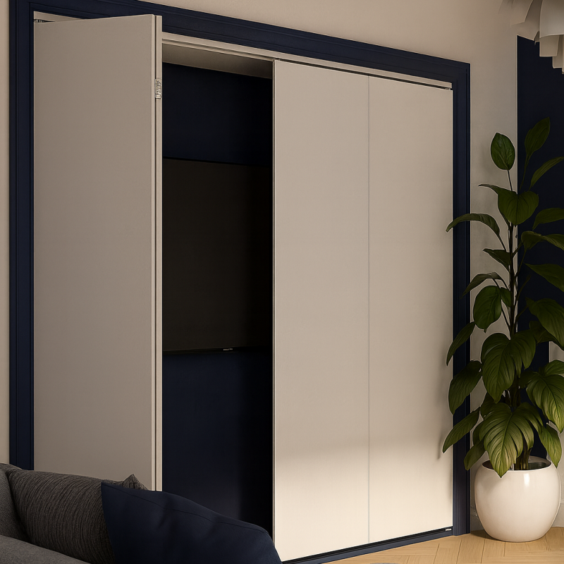 Helytakarékos - alkalmas nagyobb nyílásokhoz, gardróbszekrényekhez vagy válaszfalakhoz.